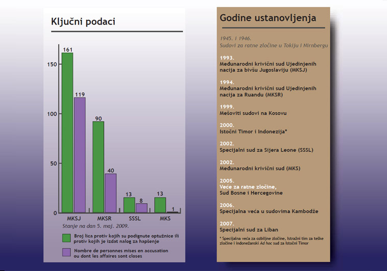 Veća za ratne zločine Suda Bosne i Hercegovine, sastavljena od domaćih i međunarodnih sudija počela su sa radom na suđenjima za ratne zločine. Njihovo uspostavljanje je zagovarao MKSJ kao ključni poduhvat nasleđa potreban za učvršćivanje vladavine prava.